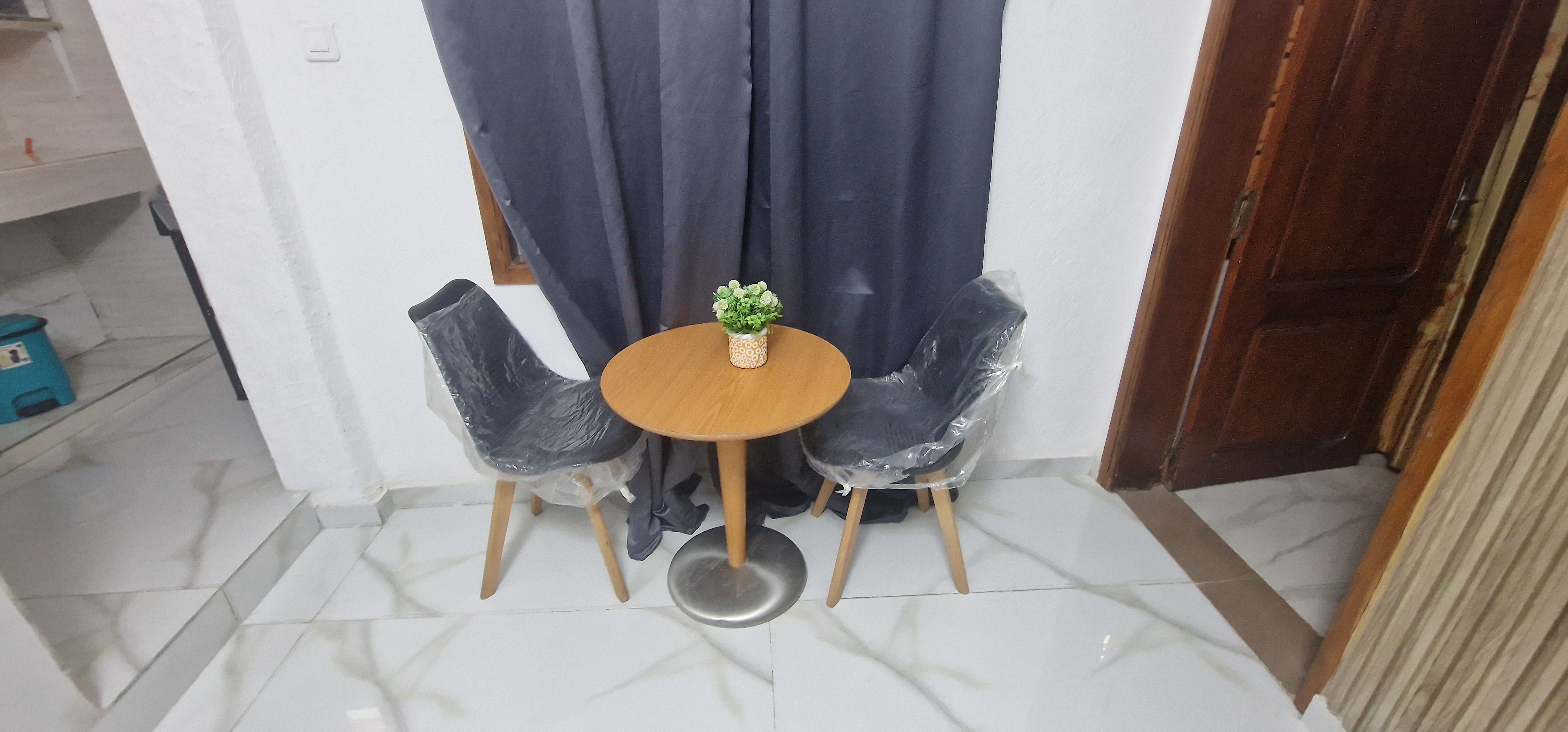 L’appartement est composé d’une chambre à coucher entièrement équipée, avec une salle de bain disposant de tous les accessoires nécessaires. Le salon comprend une télévision, deux canapés, ainsi qu’une table et trois chaises. La cuisine est également entièrement équipée avec tous les accessoires indispensables. Si tu veux, je peux te proposer une version plus commerciale ou plus courte.